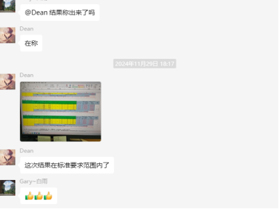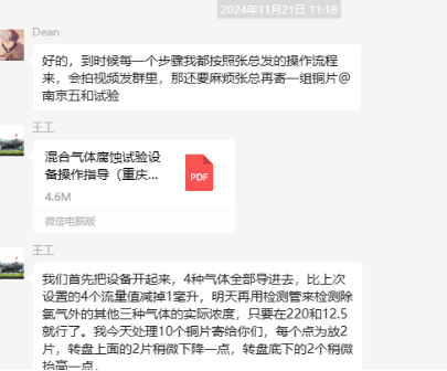 2024年8月份重慶******第三方檢測公司再次采購我司一臺型號為“WHQ-300B”型的混合氣體腐蝕試驗箱,設(shè)備被運送到客戶指定的場地安裝調(diào)試運行。客戶后期自行進行一次銅片增重試驗,起初試驗結(jié)果不是很理想,,試驗的流程和注意事項未了解透徹,我司針對以上信息,整理了操作指導(dǎo)作業(yè)書進行幫助理解;通過理論知識和我司技術(shù)人員線上指導(dǎo)操作的配合,該增重試驗很成功。試驗結(jié)束之后客戶將數(shù)據(jù)發(fā)給我司,以下是客戶和我司聊天記錄以及客戶做的數(shù)據(jù)信息:
